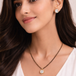 Upgrade your jewelry collection with this beautifully designed Equal Shine Solitaire Mangalsutra Set, crafted for women who prefer simplicity with perfect balance. The set features a single round crystal pendant and matching stud earrings, all designed with exact same stone size, giving a clean and premium symmetrical look.